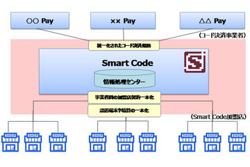 Smart Codeは、さまざまなコード決済サービスを一元化して管理、利用できるもので、Smart Code加盟店では対象の全決済サービスで決済できる。対象の決済サービスは、au PAYや銀行Pay、ANA Pay、JAL Pay、メルペイ、ゆうちょPayなど。