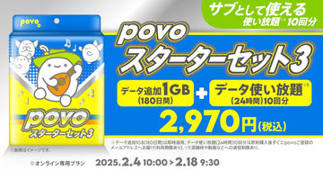 特典内容は、1週目は「データ追加300GB(90日間)」が通常9834円のところ834円オフの9000円で提供される。期間は6日20時30分~9日23時59分まで。2週目以降は毎週木曜日20時30分にpovo公式XとInstagramで順次発表される。