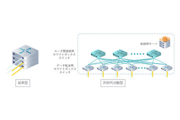 今回はそのピアリングルーターにつながる場所へ設置されるコアルーターとなる。一見すると通常のルーターと変わらないとのことだが、中身が異なる。パケットをスプレーのように分散して処理できるという。