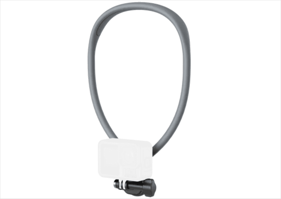 アクションカメラ用クイックリリースネックマウントは、アクションカメラを本体に装着し、首にかけて撮影することができる。ネックストラップの全長は600mmで、首に快適にフィットする。