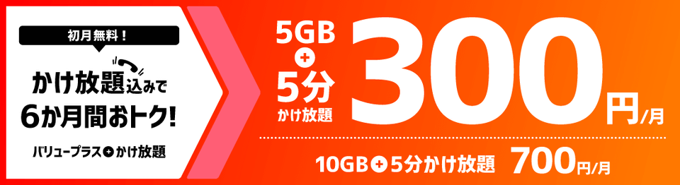 また、バリュープラスの申し込みと同時に「通話定額オプション(5分)」を申し込むと、初月から6カ月間オプション料金が0円となる。