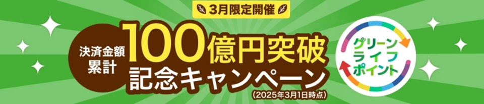KDDIは、「グリーンライフ・ポイント」でのau PAYの決済金額が累計100億円に達したことを記念して、1000円分のau PAYギフトコードがあたるキャンペーンを実施する。期間は3月3日12時~3月31日23時59分まで。