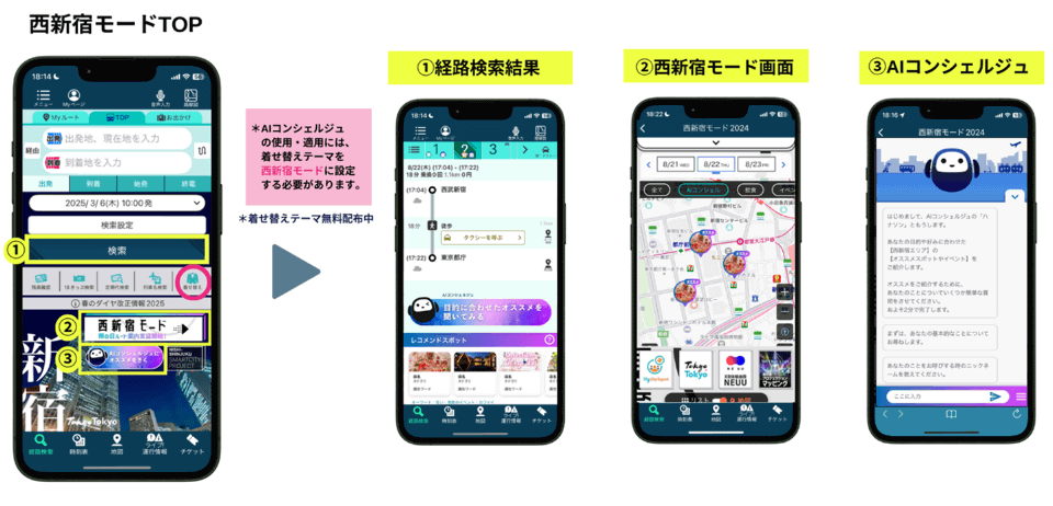 ジョルダンの「乗換案内」アプリ、西新宿エリア内で「AIコンシェルジュ」機能をリリース