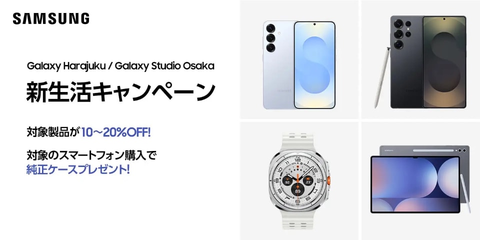 サムスン電子ジャパンは、公式オンラインストア「Samsungオンラインショップ」および「Galaxy Harajuku」などのリアル店舗で、新生活キャンペーンを実施している。