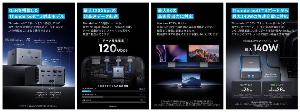 「Anker Prime ドッキングステーション(14-in-1、8K、Thunderbolt 5)」は、アンカーで初めてThunderbolt 5に対応した製品。