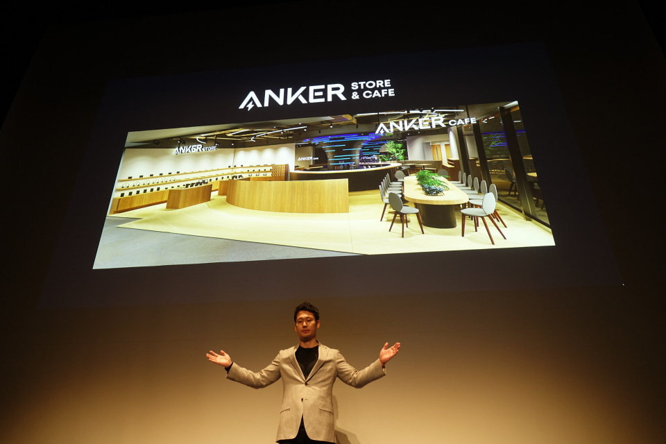 「製品そのものだけではなく、その先の安心・快適なスマートな生活を届けたい」と話す猿渡氏。その一環として、飲食事業に参入することが明かされた。5月24日に東京都港区汐留に1号店の「Anker Store & Cafe 汐留」がオープンする。Anker Storeが併設されており、製品を手にとって購入できる。