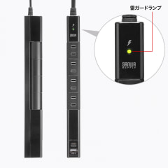 本体には、ネオジムマグネットが付いており机の足などに固定できるほか、裏面にあるネジ穴で壁のネジなどに引っ掛けられる。雷サージから接続機器を守る「雷ガード」を備えるほか、電源コードは断線しにくい二重被覆コードになっている。