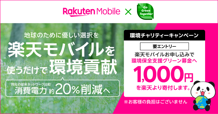 「楽天モバイル」使うと環境保全に貢献、1契約1000円募金
