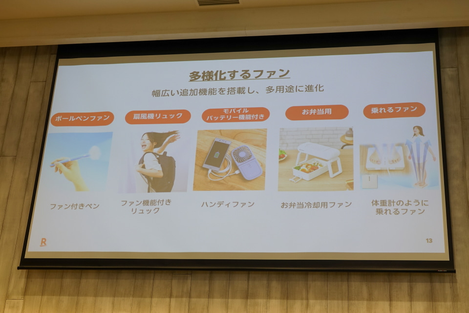 具体的な商品としては、定番の小型ファンのほか、モバイルバッテリー付きやお弁当冷却用といった多機能タイプも登場。