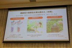水筒もミスト機能付き、ポケットサイズ、大容量タイプ、水筒型氷のうなど、機能と携帯性を兼ね備えたものが揃っている。さらに、UVカット服もサンバイザー付き、デザイン性の高いタイプ、子供用など豊富に展開。
