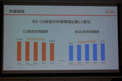 岩木氏は、今回の株式取得と完全子会社化について、BSとCSの市場環境の変化に注目し、「CS放送市場は縮小する一方、BS市場は年々拡大してきている」と指摘。JCOMはBSとCSの双方でチャンネル運営に関わっているが、これまでのノウハウを活かしつつ、拡大傾向にあるBS放送のチャンネルを拡大することで、事業の持続的成長に繋げる狙いがある。
