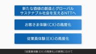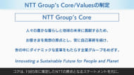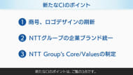 その後、決議事項の1つである同社の社名変更について説明。1985年の民営化から40年が経過し、事業を拡大していく中「特に競争の激しいグローバル市場では、NTTグループの技術力やケイパビリティをわかりやすく示し、企業ブランドを高めることが急務」と、社名変更およびCIの刷新に理解を求めた。