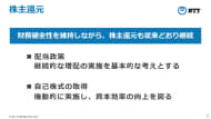 このほか、NTTデータグループの完全子会社化、ドコモによる住信SBIネット銀行の連結子会社化、株主還元の内容などが紹介された。
