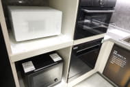 社員食堂は、大きなフードコートのようなものから、スターバックスコーヒー、サブウェイ、ケンタッキーフライドチキンなどメジャーブランドの店舗も出店。日本食の店舗などさまざまな店舗が出店している。随所に同社のキャラクター「ミィトゥ(米兎)」が登場しており、ミィトゥの形をしたアイスクリームも販売されている。無人のショーケースからも商品を購入でき、QRコードの決済で扉が解錠され、商品を取り出せる仕組みになっている。