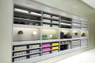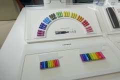 ラボには、同社が取得した特許の銘板が展示されている。担当者は、グループ全体で4万件の特許をもっているとアピール。社外のさまざまなアワード受賞歴も展示されており、同社の技術力をアピールする施設となっている。