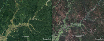 過去の画像はGoogle Earthの左下「レイヤー」の「過去の画像」から見ることができる。上部のスライダーで見たい年代に移動でき、タイムラプス式に画像を再生することもできる。