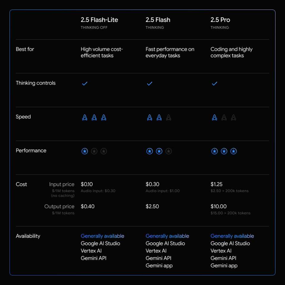 Gemini 2.5シリーズではもっとも低コストで、100万トークン入力あたり10米セント、100万トークン出力あたり40米セントとなる。オーディオ入力時のコストも、プレビュー版から40%引き下げられた。