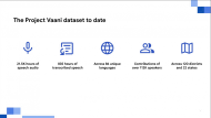最初に紹介されたのは、インド国内の言語的多様性を反映し、デジタル・インディアの実現を目指す「Project Vaani」。インドでは22の公用語を含む1300以上の言語が存在するが、これらをカバーする既存の音声データセットは限定的で、AIモデルの訓練に必要なカバー率は5%未満にとどまっている。