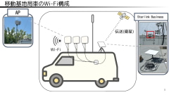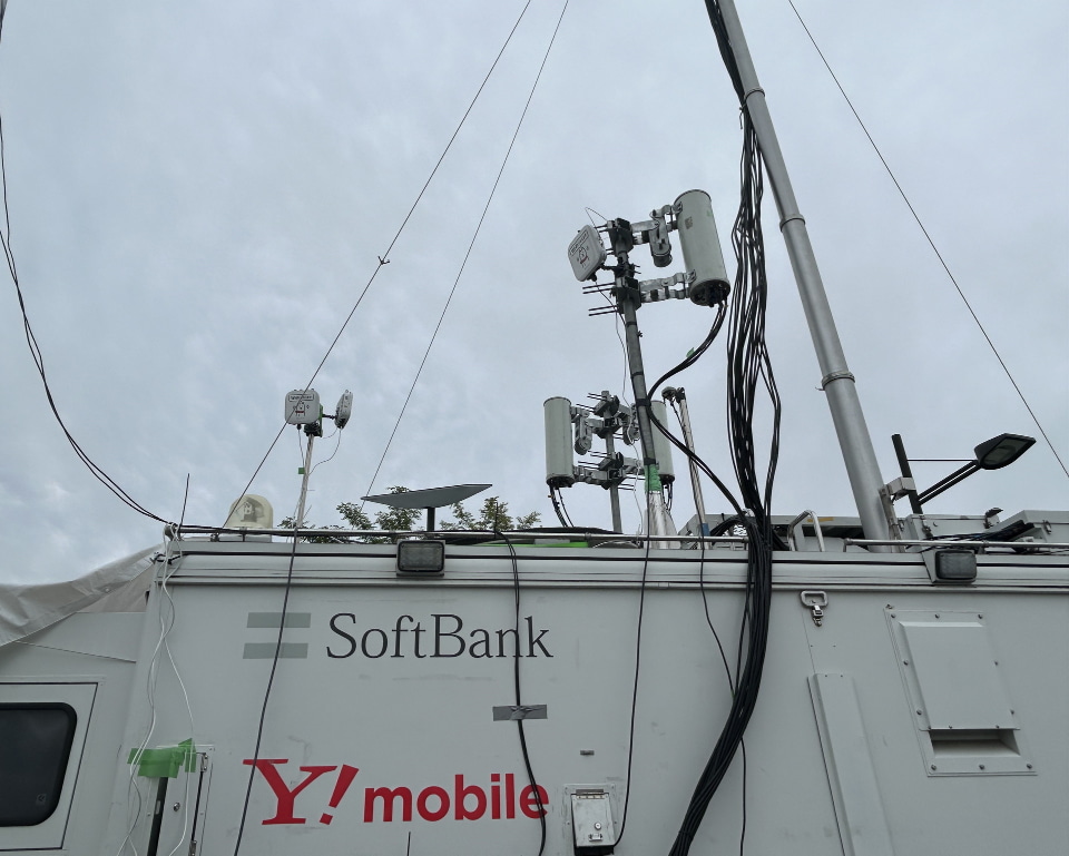 ほかにも4G/5Gの移動基地局車が同じく東側待機列ができる付近に展開する。こちらも4G/5Gともに帯域を増強。従来は1セクターだったところを、3セクターに増やした。同車には「Starlink Business」を用いたWi-Fiも設置される。2台の車両にそれぞれ3つずつアクセスポイントが設置される。ソフトバンクユーザーのみが利用できる。