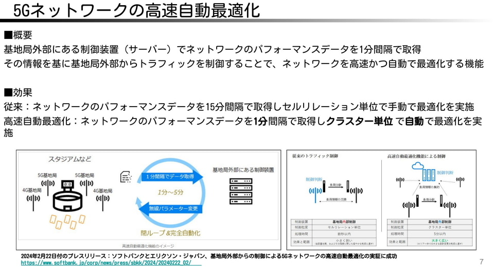 ほかに、制御装置でネットワークのパフォーマンスデータを1分間隔で取得し、基地局あたりのトラフィックを分散し、ネットワークを最適化する仕組みも活用する。