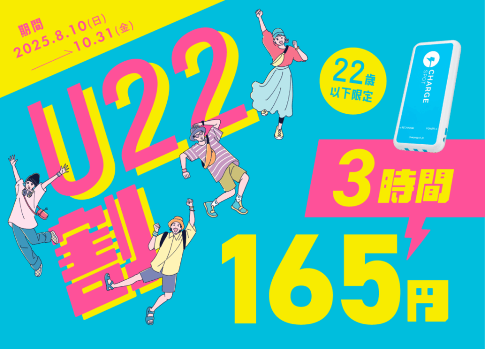 ChargeSPOT、3時間未満/165円の「U22割」開始