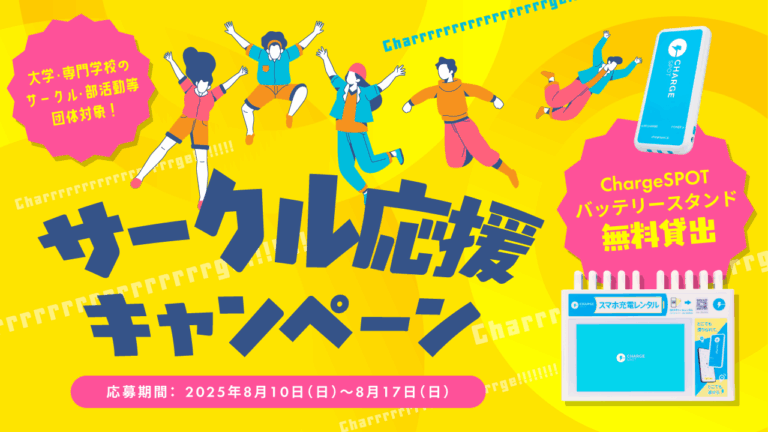 このほか、大学などのサークル、部活動の団体を対象にChargeSPOTのバッテリースタンドを無料で貸し出すキャンペーン「サークル応援キャンペーン」が実施されている。応募期間は8月17日まで。