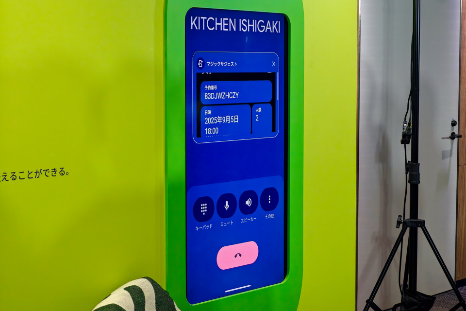 新機能「マジックサジェスト」では、ユーザーの行動に先回りして関連情報を提案。たとえばレストランに電話をかけようとすると、Gmailから予約情報を自動で呼び出し、通話画面にポップアップ表示する。