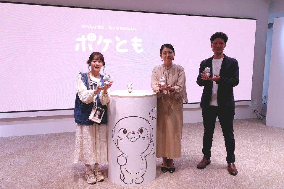 ポケともは、シャープ独自のAI技術「CE-LLM」による、音声対話ができるキャラクター。「いつもそばに居て話し相手になる」という製品で、ユーザーのことを知ろうと話しかけてきたり、落ち込んでいるとはげましてくれたりする。会話や訪れた場所を記憶しており、会話を重ねるごとにユーザーを理解して、寄り添うパートナーになるという。