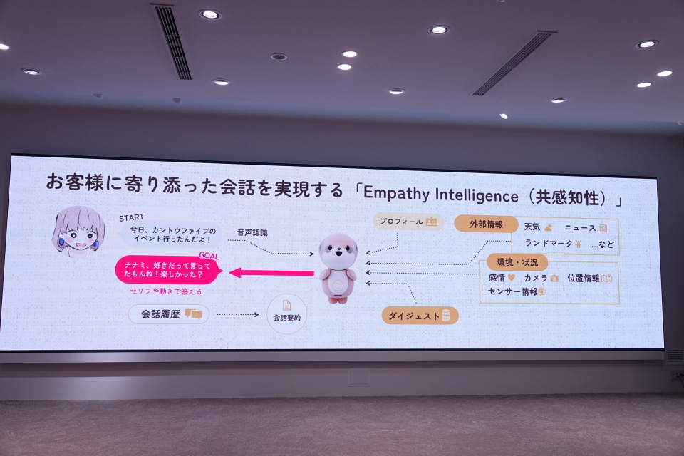 独自のAI技術「CE-LLM」を用いており、ユーザーとの豊かな会話のため、新たに「Empathy Intelligence」(共感知性)という技術を新たに開発した。会話の履歴やプロフィール、カメラの写真、位置情報、センサー情報をもとにして、状況に合わせた会話やユーザーを理解した会話を実現する。