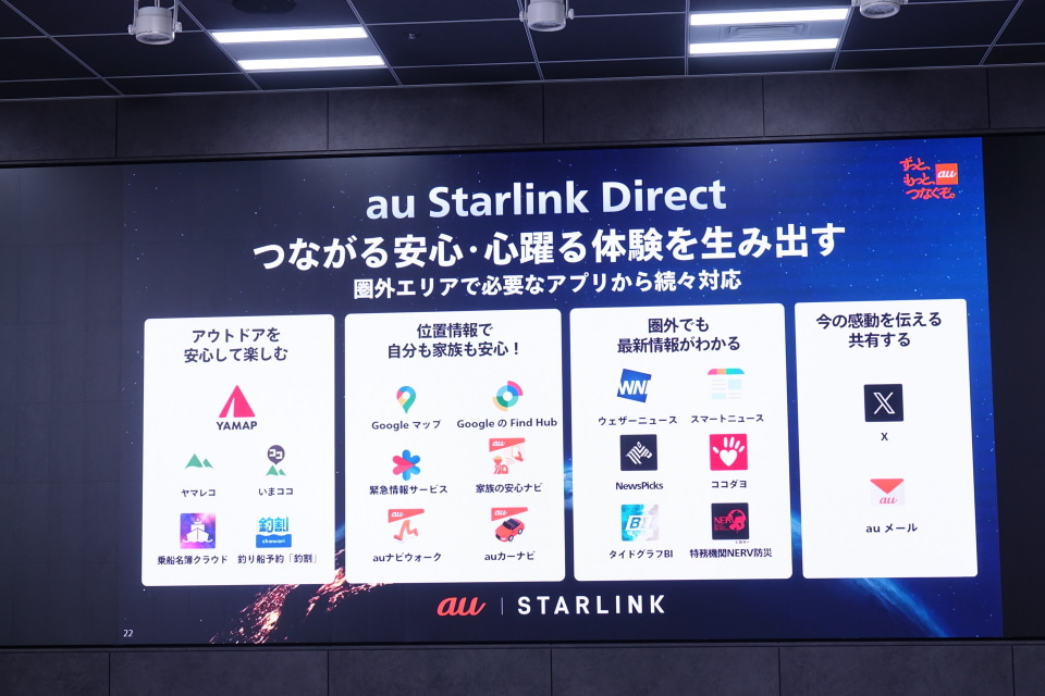 「au Starlink Direct」がデータ通信に対応、19アプリ・6機種から
