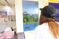 SWEET LOVE SHOWER 2025のauブースでは「ゲームスポット」「AIフォトスポット」「充電スポット」を提供している。ゲームはこれまでもあったが、内容を一新した。衛星とスマートフォンの直接通信サービス「au Starlink Direct」を印象付ける内容で、スティックとボタンを操作して、次々に現れるPontaくんに電波を当てる。スコアに応じて景品ももらえる。