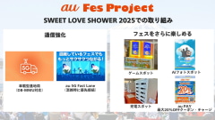 SWEET LOVE SHOWERにKDDIがブースを出展するのは、今回で3回目。ブースでの体験に磨きをかけ、ゲームを通じたauサービスの魅力の発信やローソンとの連携を強化している。ほかにも、無料でスマートフォンの充電ができる設備も整えられている。