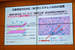 災害対応のDX化も大きな柱。BCMシステムを導入し、停電情報や避難所の位置、障害基地局の状況を可視化。地理情報システムを用いて現場ニーズに応じた迅速な支援が可能となった。
