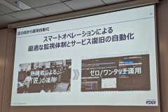 KDDIは企画・開発や品質管理を担い、KDDIエンジニアリングが設備設計や運用保守を担当する体制を構築。激甚化する自然災害やトラフィック増大、システムの仮想化に対応するため、運用の自動化とDXに注力してきた。