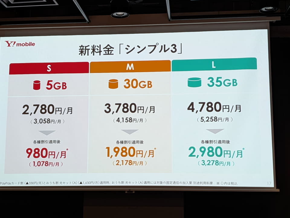 ソフトバンクは4日、ワイモバイルの新料金プラン「シンプル3」を発表した。価格は3058円~で、9月25日に提供を開始する。