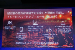 収益化の事例として、警察や消防によるボディカメラのリアルタイム映像共有、保証付きの固定無線アクセス(FWA)、ドイツテレコムのモバイルゲーミングサービス、イベント会場での高信頼・高セキュリティ決済端末などを紹介。さらにインドの大規模宗教イベントでは、45日間で6億6000万人が参加し、エリクソンのシステムが95%以上の信頼性を確保、1日で日本の大手通信事業者1社のトラフィックを超える46PBのデータを処理した実績を示した。