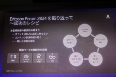 続いて、エリクソン・ジャパンの野崎哲社長が登壇。昨年のフォーラムで強調した「顧客体感」重視の取り組みが、この1年で着実に前進していると報告した。