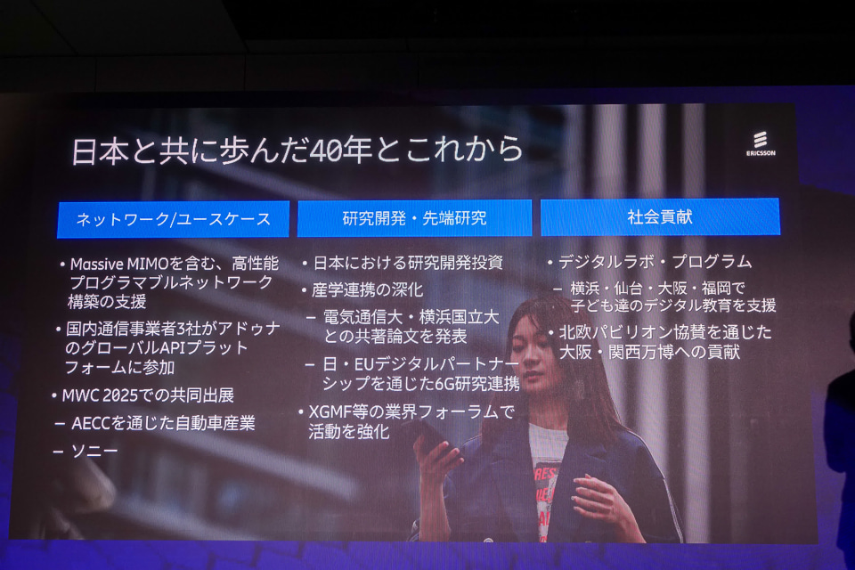 このほか、日本での研究拠点設立、電気通信大学や横浜国立大学との連携、日・EUデジタルパートナーシップによる6G研究、ユニセフとのデジタルラボ活動など、社会貢献にも力を入れている。