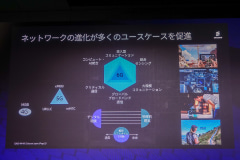 また、低遅延エンコーダーと組み合わせ、英国イベントでミリ波ネットワークとスライシングを活用した4K映像のマルチカメラ伝送を実施。有線カメラと同等の低遅延で配信が可能になった。木山氏は、今後の本格的なミリ波普及とスライシングの活用に期待を示した。