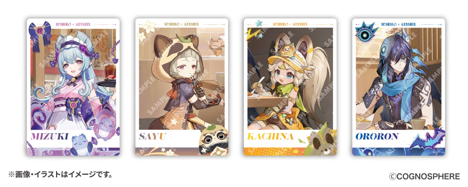 コラボ限定メタリックカード付き対象商品は、「観月の宴 原神コラボ限定メタリックカード付き 天然本鮪6貫盛り」が、前半の10日~はコラボ限定メタリックカードの手配総数18.5万枚分が完売次第終了する。後半の17日~はコラボ限定メタリックカードの手配総数13.9万枚分が完売次第終了する。