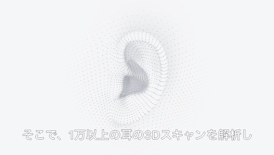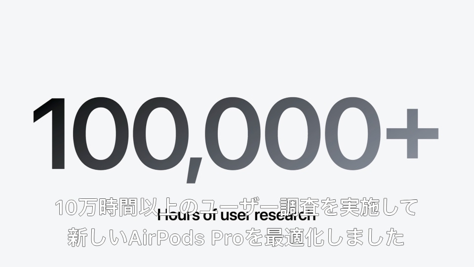 イヤーチップの刷新に合わせ、AirPods Pro 3の本体サイズも小型化。1万以上の耳の3Dスキャンを解析し、10万時間以上のユーザー調査を実施して最適化することで、フィット感を向上させている。