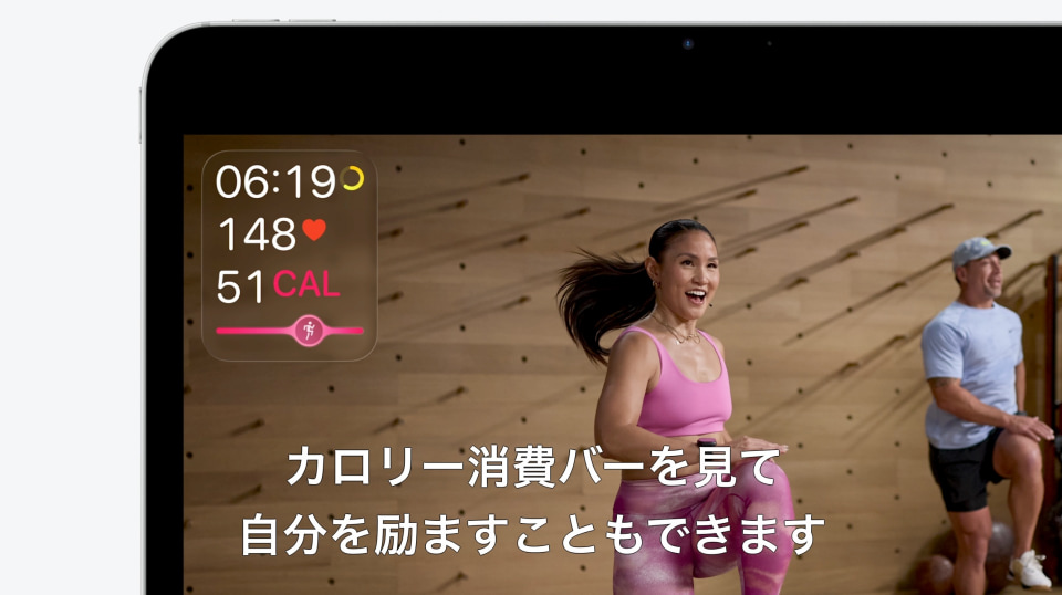 Apple Fitness+のユーザーは、心拍数、消費カロリー、ムーブリングの進捗状況、バーンバーなど、リアルタイムのパフォーマンス指標を、iPhoneの画面上で直接表示できるようになる。