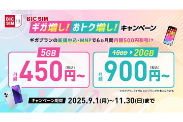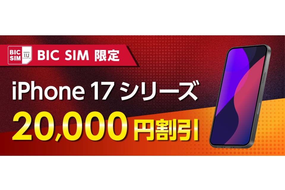 ラネットは、MVNOサービス「BIC SIM」を契約すると新型iPhone 17シリーズを含むSIMフリーiPhoneを最大2万円割引で購入できるキャンペーンを実施する。期間は9月12日~30日まで。