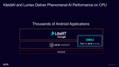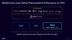 LumexはPyTorch ExecuTorchやONNX Runtimeといった主要AIフレームワークに対応しており、KleidiAIを介することでコードを変更せずにSME2の加速効果を利用できる。