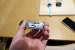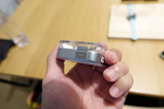 充電ケースのマイクは、指向性を持ったものが搭載されており、実際にユーザーが手に持ち、口元で手持ちマイクのように添えて話すようなイメージ(口から30cmくらいの位置)での使用が想定されている。スーパーマイクの適用時は、本体横のランプが点灯し、イヤホン本体のマイクと並行して音を拾う。