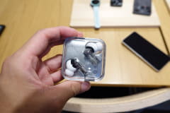 Nothingデバイス共通のシースルー感を踏襲しながらも、新しいデザインにチャレンジしている。充電ケースはクリアケースになっており、収納したイヤホン本体のメタル素材が覗けるデザインを採用。