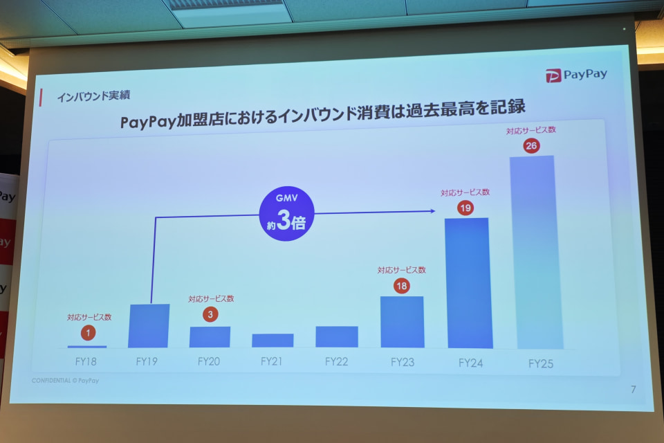 PayPayはこれまで、海外からの訪日観光客向けの「インバウンド」事業に注力してきた。2018年の中国Alipayとの連携を皮切りに、コロナ禍を経て2020年にはカカオペイを導入するなど、連携数を飛躍的に拡大。