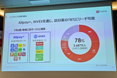 現在ではAlipay+やHIVEXを通じて14カ国26サービスと連携しており、訪日外国人の約78%をカバーしている。