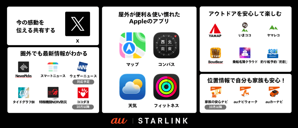 あわせて一般公開した、「au Starlink Direct」のアプリ開発者向けサポートサイトなどを通して、対応アプリの拡大を推進する。