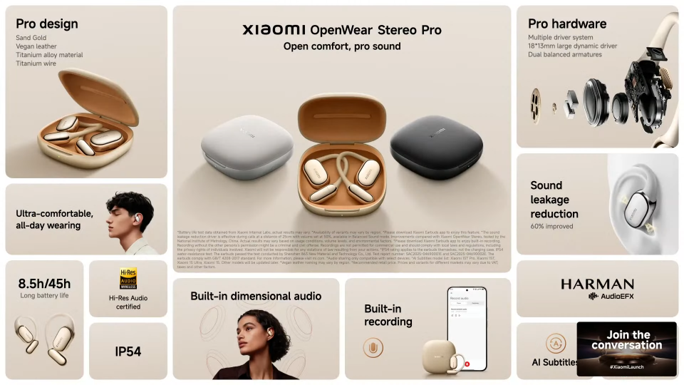 「Xiaomi OpenWear Stereo Pro」は、シャオミとして初めてハイブリッドマルチドライバーを搭載したオープンイヤー型ワイヤレスイヤホン。